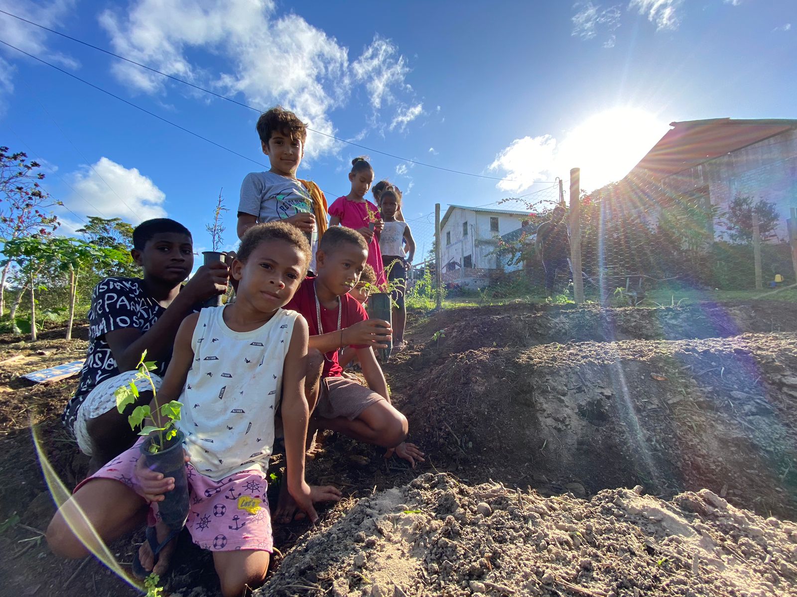 Através de mutirões comunitários transformamos uma ruína de barcaça de cacau num projeto-piloto pioneiro de adaptação climática de escola do campo.